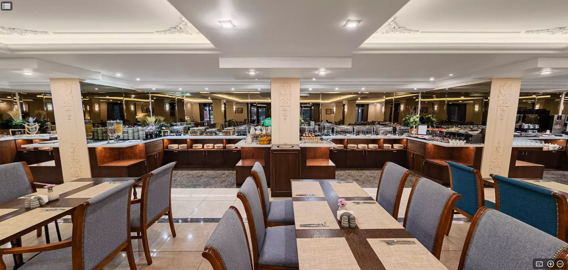 Рассчитанный на 80 посадочных мест, ресторан находится в главном здании Гостиницы.