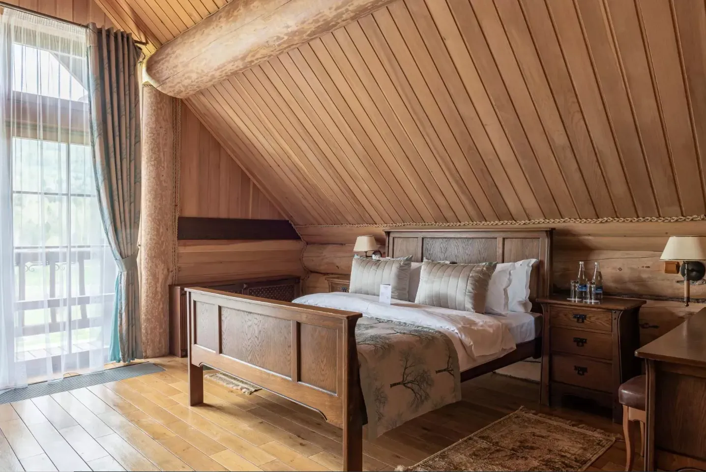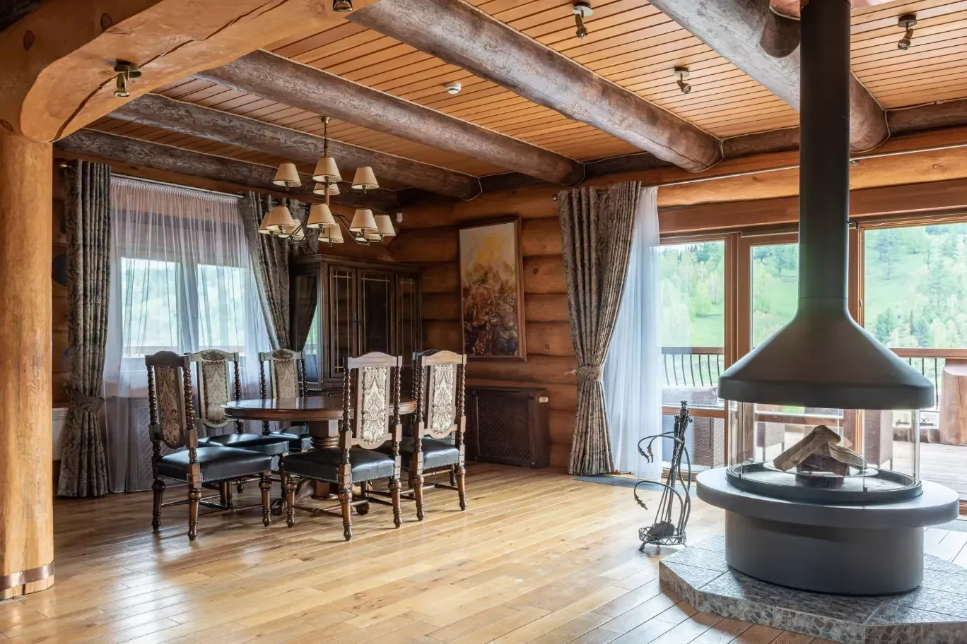 Двухэтажный деревянный шале в старорусском стиле с кухонной и обеденной зонами, просторными спальнями и ванными комнатами. Наслаждаться запоминающимися летними вечерами можно на открытой террасе или в гостиной у камина. Выбор за Вами.