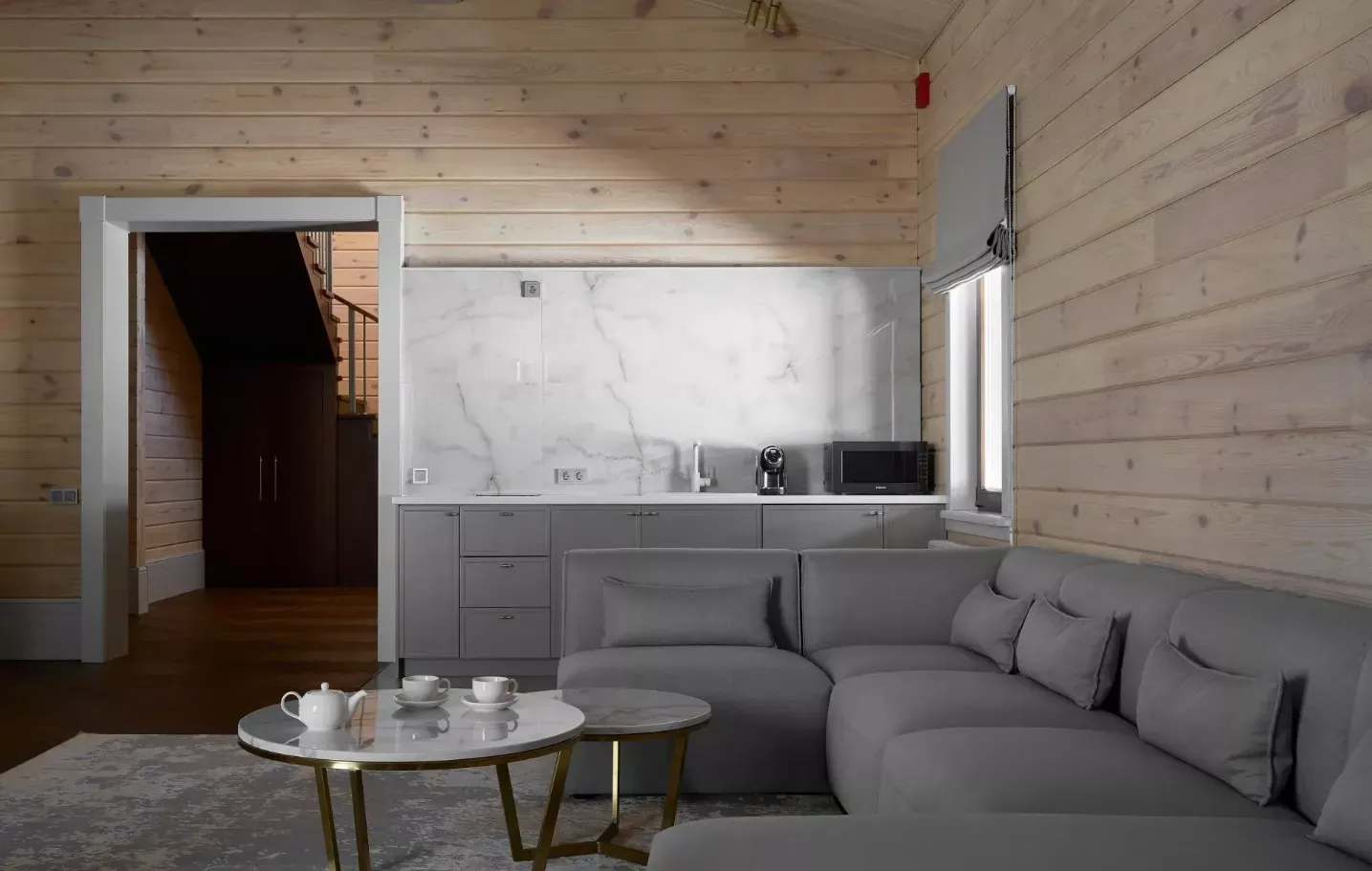 Пространство создано для размеренной загородной жизни. Здесь удобно жить большой семьёй или компанией друзей — каждому найдётся место и для уединения, и для душевных вечеров в гостиной.