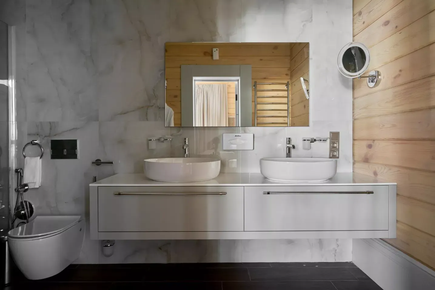 Шале «Дуплекс» — половина просторного дома из клеёного бруса, выполненная в скандинавском стиле. Светлые тона, чистые линии, никаких лишних деталей. Только вы, ваши близкие и Алтай за окном, на который хочется смотреть бесконечно. Это место, где архитектура становится фоном для главного — тишины, уюта и настоящего отдыха.