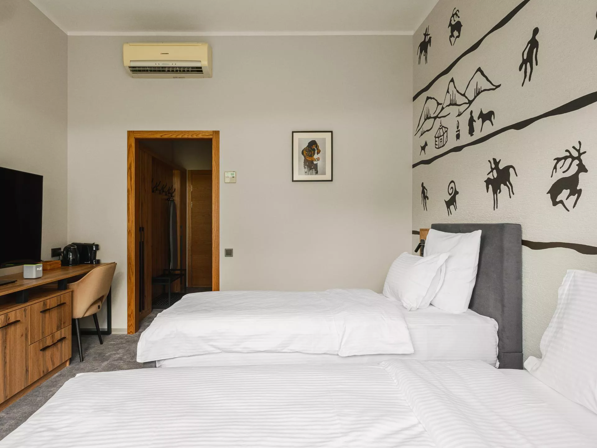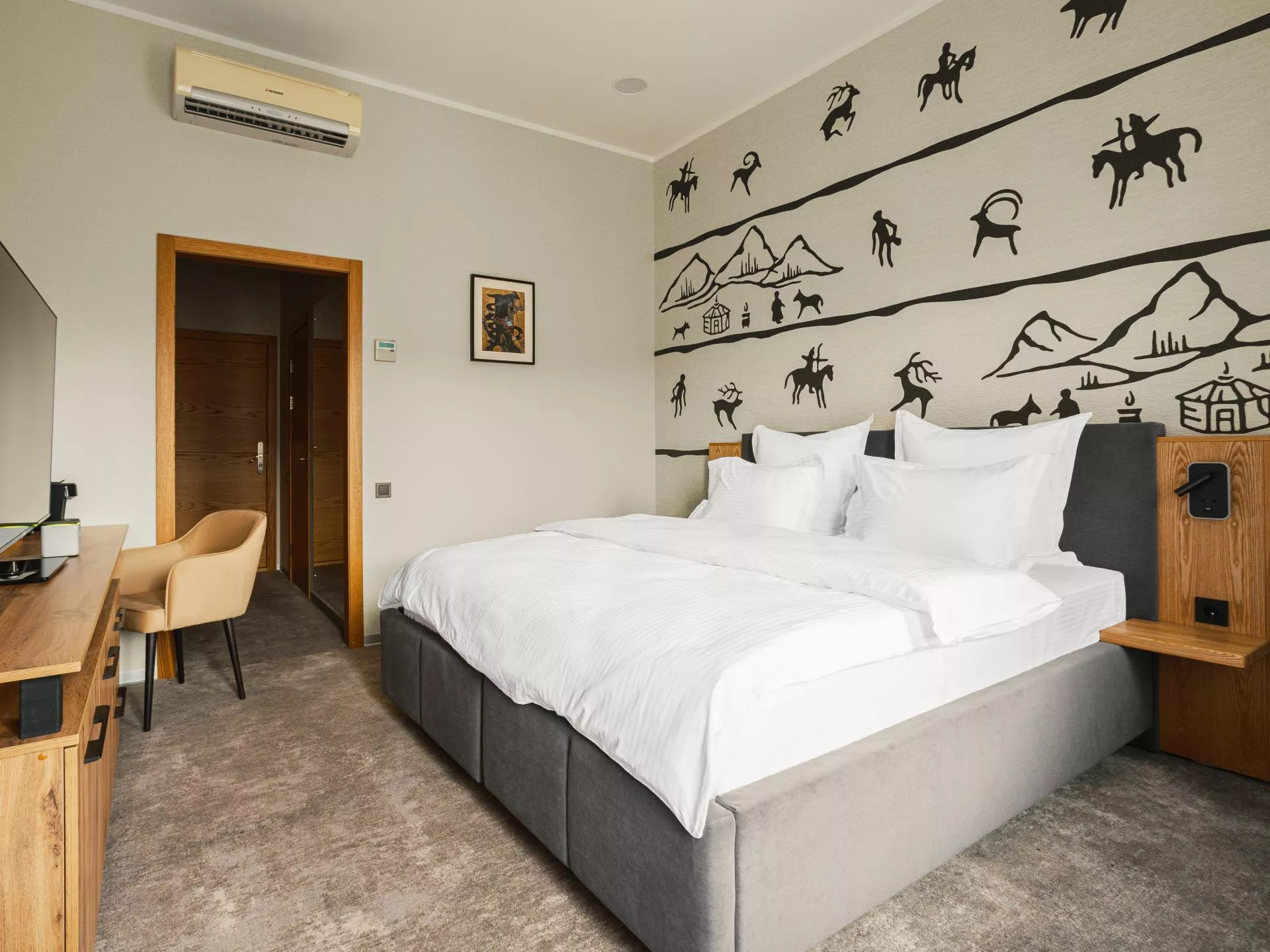 Новый дизайн с аутентичными локальными петроглифами, безупречная эргономика номера, комфорт и автоматизация! Теперь в каждом номере для вас Яндекс станция "Алиса" для регулирования освещения и не только. Все это дополнено высококлассным сервисом и незабываемыми впечатлениями.